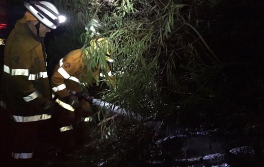 Fortunately there was no wind and the residents had the fire under control by the time the brigade arrived. Duncan and Emma arrived with the Light Tanker to black out while the other trucks were stood down. Annie and Mark P, Bevan, Douglas, Fish, Kevin, Joe and Tony were also on the scene. Alan, Andy, Bob S, David and Mike B were on the stood down trucks. And Barb and John coordinated. By 10pm the brigade was on its way home with another reminder that although the fire season may be over, fires aren’t.