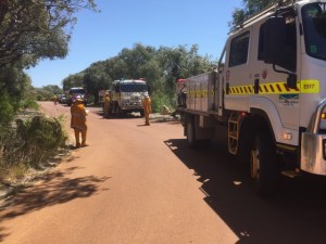 Saturday was a busy day for Yallingup Rural with trucks heading off in different directions. Bruce and Emma went south with the Light Tanker to assist at the Forest Grove fire. The fire had started midday Friday and had moved into a pine plantation. They spent the day helping to contain and blacking out the fire.