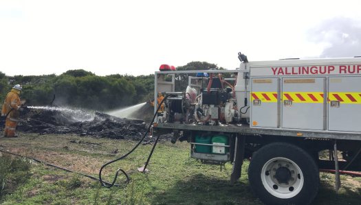 Steveo, Emma and Tony joined the Wilyabrup captain and the Busselton 12.2 water tanker in dousing the fire. The 12.2 fed the 4.4 while Emma, on the cannon, and Tony and Steveo on the back hoses extinguished the fire in less than an hour. They were also treated to some spectacular views down the coast.