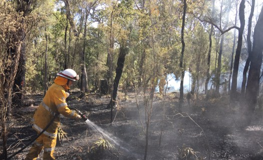 The fire, although out on the surface, had continued to smoulder underground until midday Thursday when it erupted. The 4.4 with Allan, Andy, Rob and Steveo and the Light Tanker with Emma and Tony turned up. It was decided by FCO Fish that due to the possibility of the fire reigniting again, it was best to burn the whole block. So the crews spent time clearing around trees, stumps and fallen logs. The unburnt areas were ignited and over the next two hours the fire was monitored, trees were protected and it was eventually blacked out. A variable wind picked up from time to time, keeping everyone on alert. The whole operation took three hours.