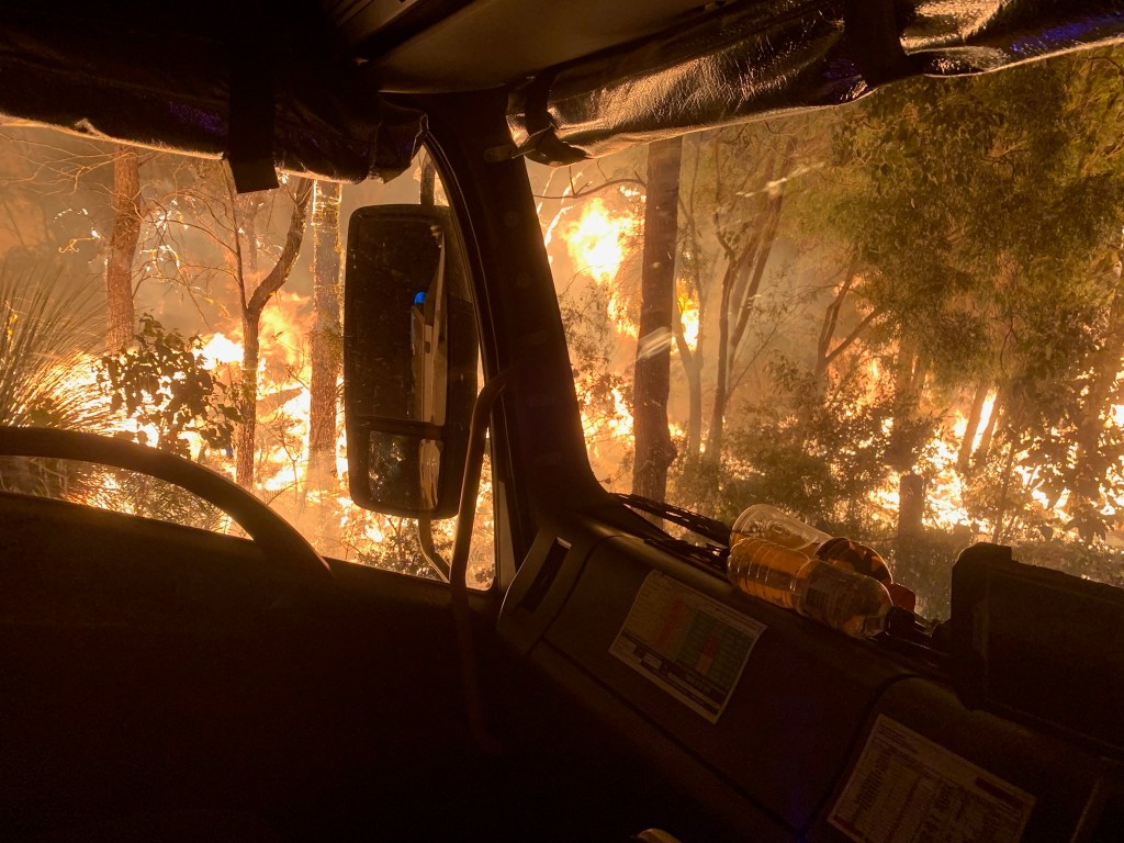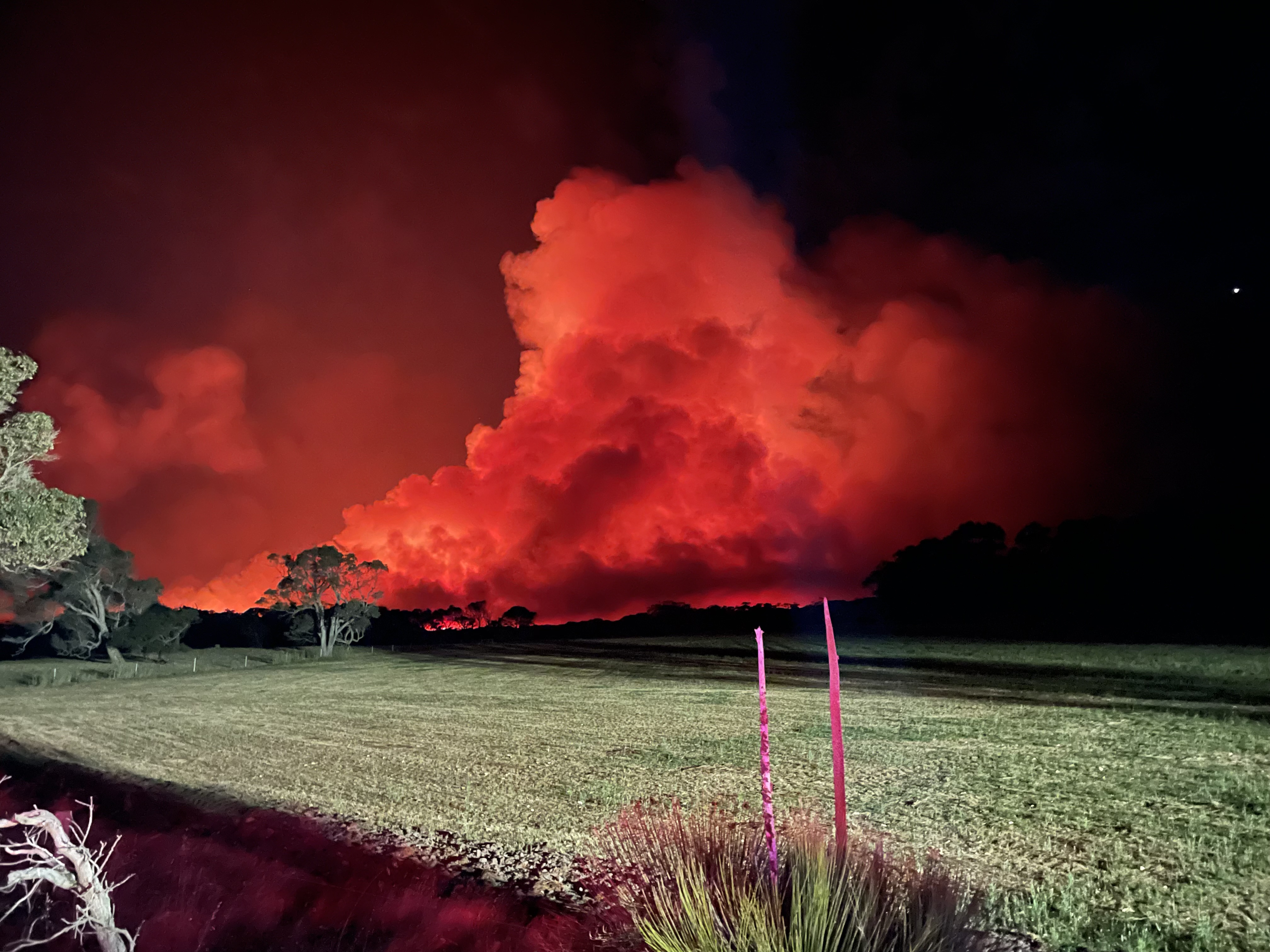 View from the Yallingup Rural 4.4 cabin during back burning operation on the north end of the Calgardup fire, early Thursday morning.