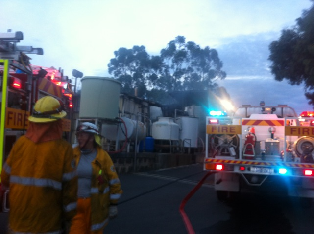 After about three hours the 4.4 was called off to attend a fire at the Margaret River Dairy Company factory on Bussell Highway, about 10 k away. Initially the crew supplied water from a tank behind the factory to SES firefighters attacking the fire. Later the 4.4 was replaced by the Dunsborough 3.4 and then backed up the Yallingup Coastal crew as they got their BA baptism of fire. The crew was stood down at 6:30 am. Meanwhile the 1.4 had been stood down at 5:30.